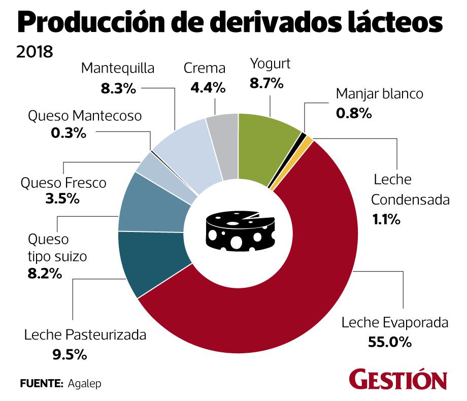A nivel de producción, esta crecería entre un 2% o 3%, proyecta Guevara. El otro impulso que también reciben los productores lecheros es el crecimiento en la producción de quesos y yogures.