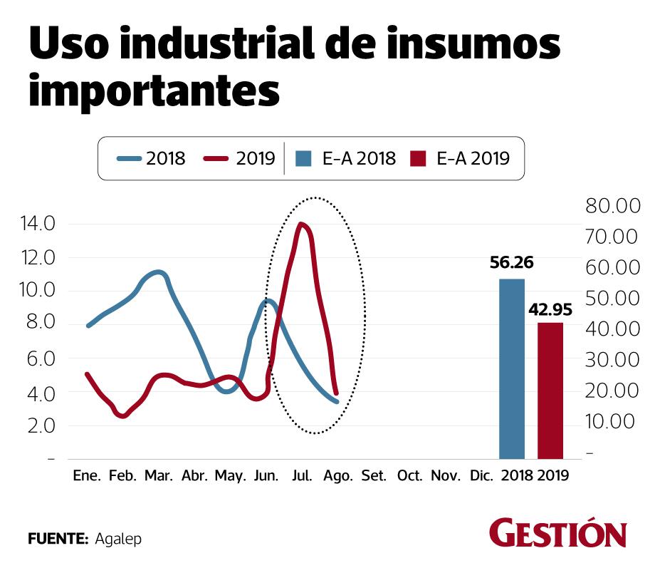 Así pues, entre enero y agosto del 2019, el uso industrial de insumos importados en la industria láctea acumula una caída de -23.66%. Mientras que, entre enero y junio del 2019, el acopio alcanzó las 629 toneladas, registrando un crecimiento de 38% respecto al 2018, según cifras oficiales del Ministerio de Agricultura. Sin embargo, el Minagri hizo un recálculo y el acopio acumuló un crecimiento de 2,5% entre enero y agosto de este año.