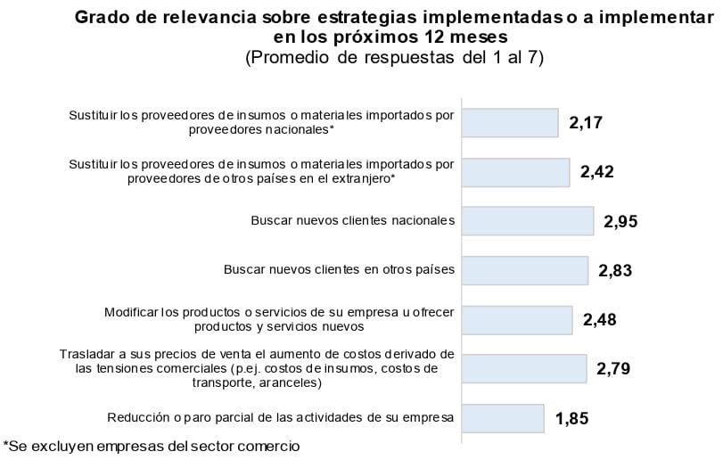 De acuerdo a la encuesta del banco, tanto la búsqueda de nuevos clientes nacionales como internacionales fueron las alternativas más escogidas. Otra “salida” preferida sería trasladar el aumento de costos derivados a los precios de venta.