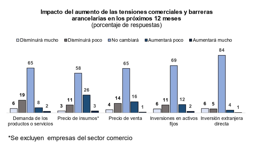 Ante la consulta de si el aumento de las tensiones comerciales y barreras arancelarias afectó alguna de estas variables, la conclusión mayoritaria fue de que “no cambió” el panorama.