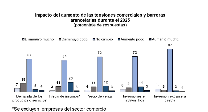 Al respecto, la conclusión del BCRP es que, para la gran mayoría de empresas encuestadas, el aumento de las tensiones comerciales y barreras arancelarias no impactaron durante el 2025. ¿También piensan lo mismo de cara al próximo año? Aquí la respuesta.