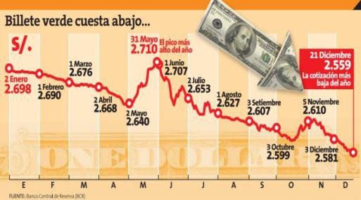 "Este ha sido el peor año para el dólar. Ha perdido el 5.12% de su valor y está a punto de cerrar en su nivel más bajo en más de 16 años", comenta el gerente de Estudios Económicos del Banco de Crédito del Perú (BCP), Alonso Segura.