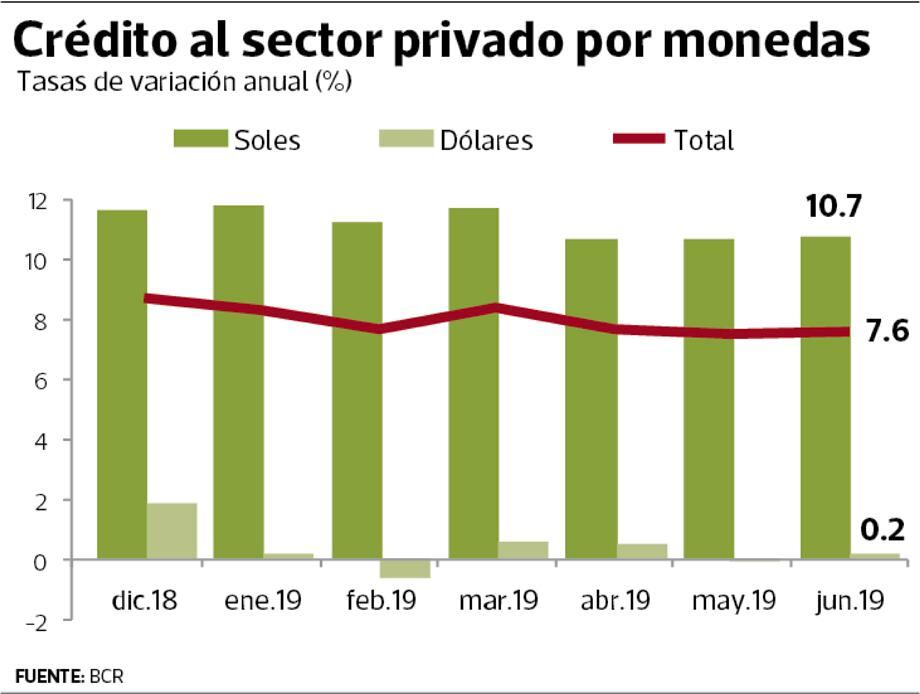 En efecto, a junio último, los préstamos en dólares en el sistema financiero aumentaron a ritmo anual de apenas 0.2%, mientras que los concedidos en soles, lo hicieron en 10.7%, según datos del Banco Central de Reserva (BCR).