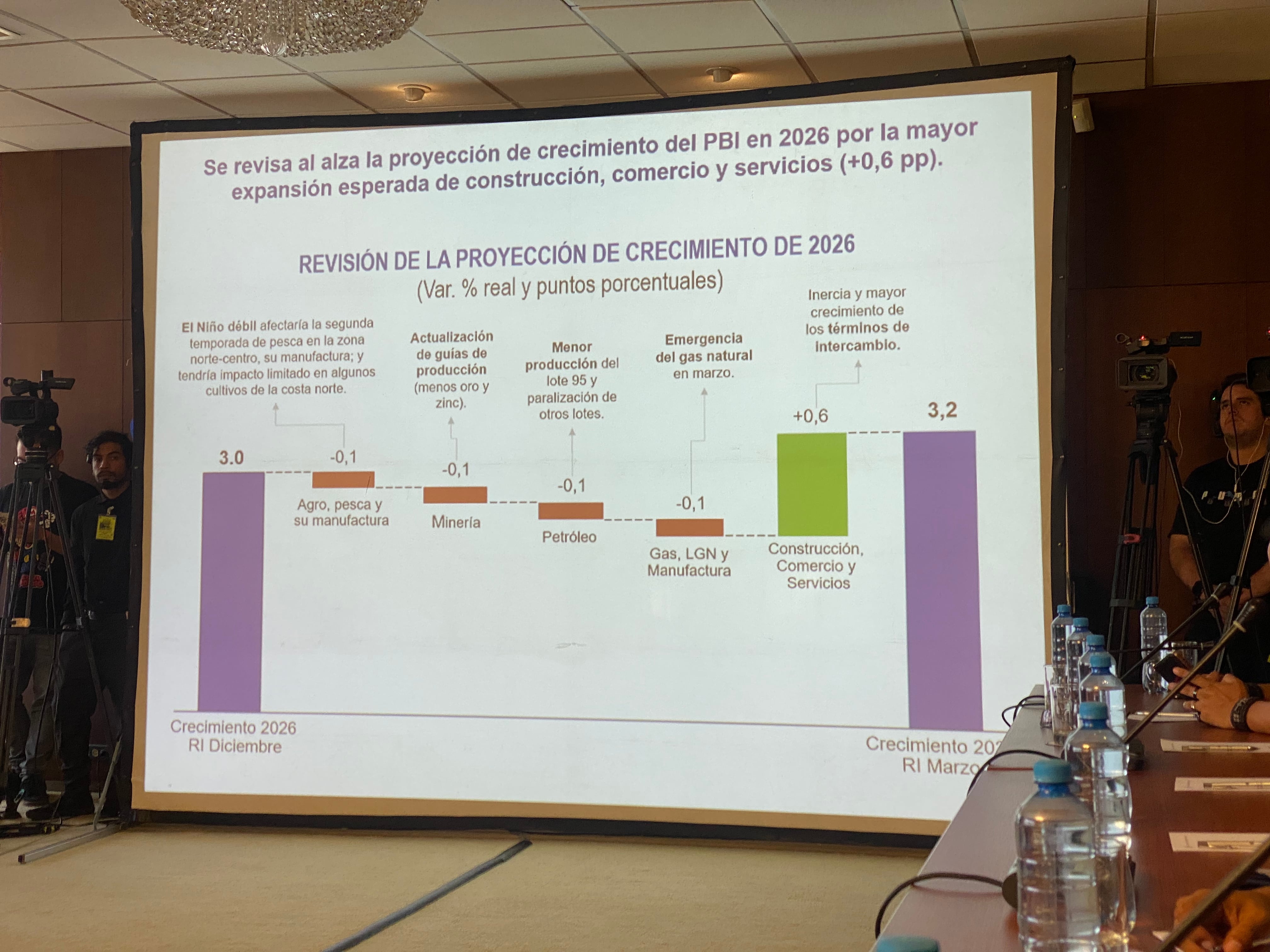 Sin embargo, el Banco Central de Reserva del Perú (BCRP) es optimista y acaba de ajustar al alza su proyección de crecimiento para la economía nacional en 2026. Julio Velarde, presidente del banco, reportó que ahora el Producto Bruto Interno (PBI) aumentaría 3.2%, por encima del 3% esperado en diciembre.