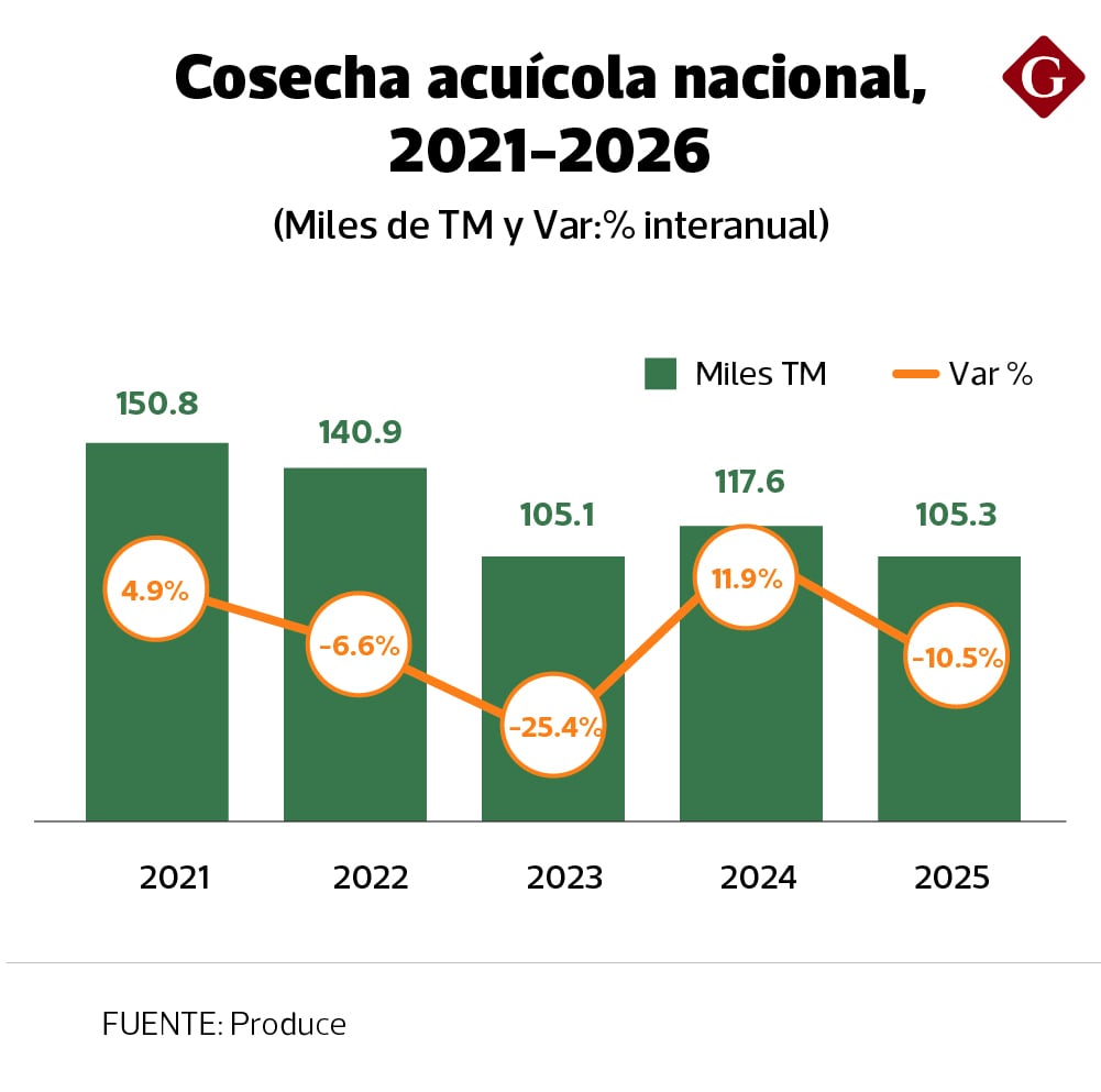 Así el Produce apuesta porque el sector tenga un crecimiento superior al 9% para el cierre del 2026, luego que la cosecha acuícola nacional cayera 10.5% en 2025 y registre resultados mixtos desde 2021.