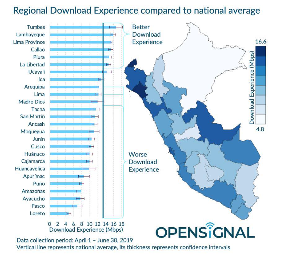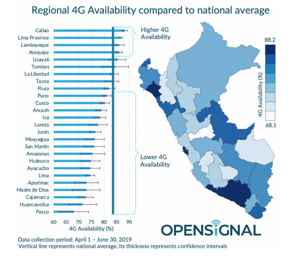 La experiencia móvil está fuertemente influenciada por si un usuario puede acceder a 4G en cualquier momento. En Perú, se ve que la disponibilidad de 4G varía según la región, de tan solo 68.1% (de disponibilidad) en Pasco a 88.2% en el Callao, según el último reporte de Opensignal.
