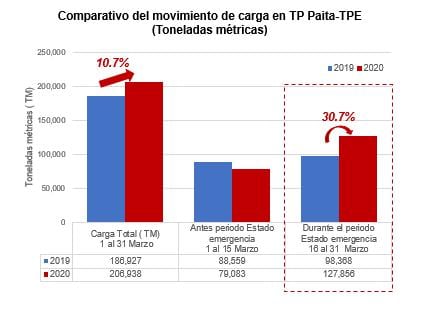 Durante el mes de marzo, el Terminal Portuario de Paita, en la región de Piura, registró un movimiento de 206,938 toneladas métricas de carga a granel, esto significó un crecimiento de 10.7% respecto de marzo del 2019, según cifras de la Autoridad Portuaria Nacional (APN).