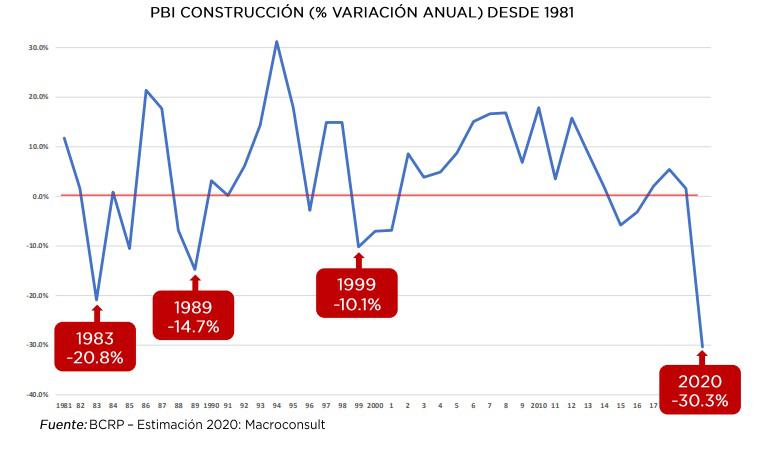 La Cámara Peruana de la Construcción (Capeco) alertó que debido a la grave recesión que afecta a la actividad constructora, esta sufriría una caída de su nivel de producción de 70% en el segundo trimestre del año y que podría terminarlo con 30% de merma en el producto bruto sectorial.