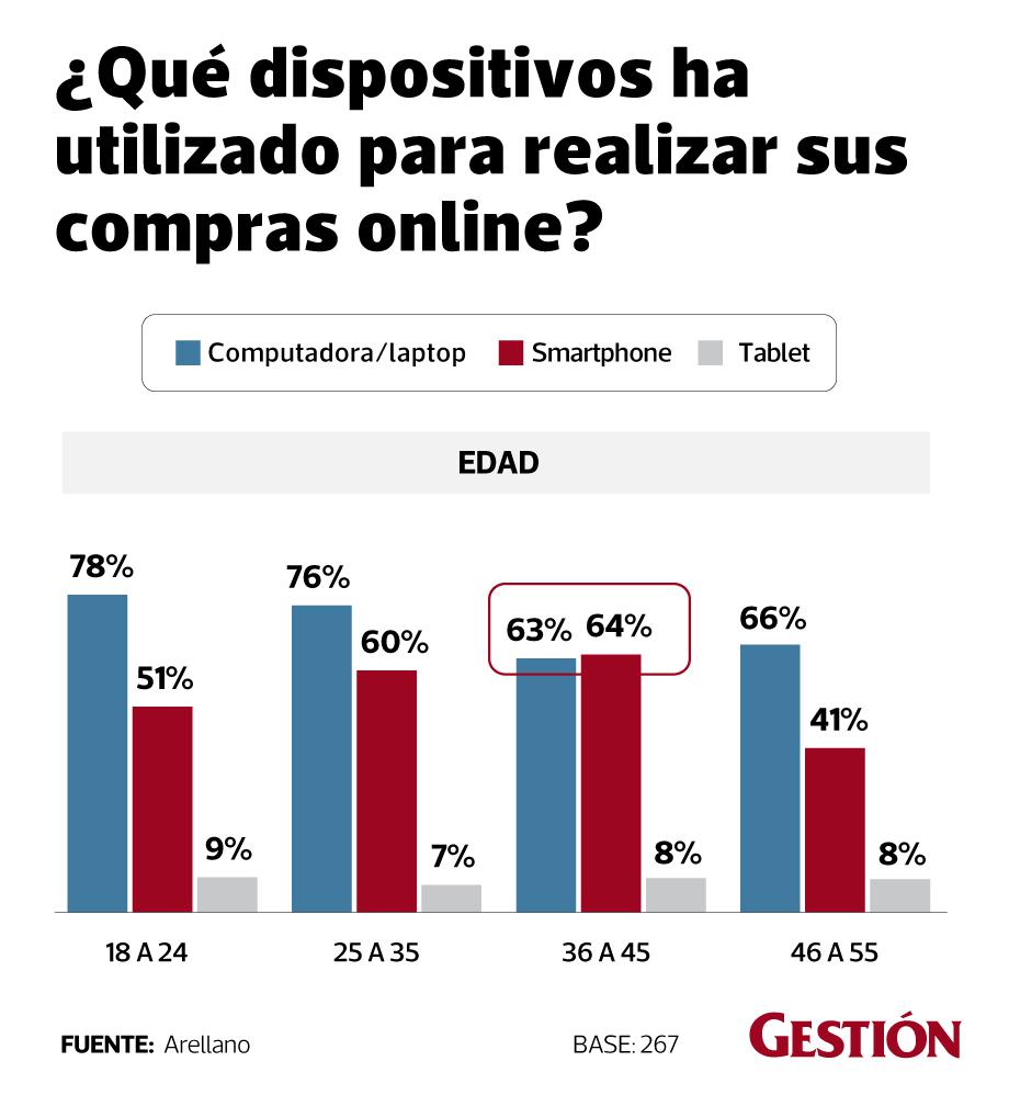 Y contrario a lo que uno esperaría, son los más jóvenes (18-24 años) los que optan más por una computadora (78%), mientras que quienes están entre los 36 y 45 años usan de manera pareja laptop y smartphone (63% y 64%, respectivamente)”, indicó Ana Lucía Navarro.