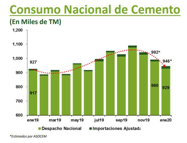 La tendencia parece revertirse, dado que en enero del 2020 se consumió 946 mil toneladas, versus las 927 mil toneladas reportadas en enero del 2019.