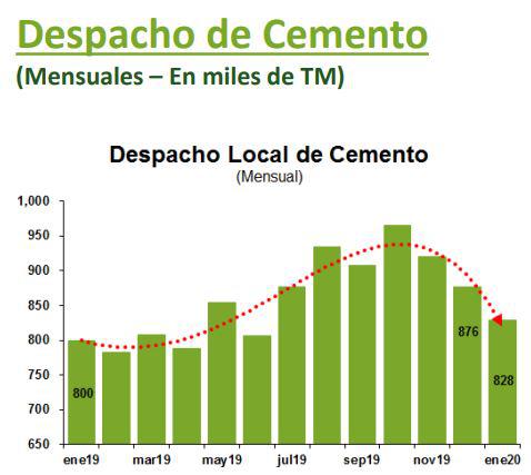 En cuando al despacho local, las cifras reportadas muestran un incremento en 3.6% en enero, comparado con similar mes del 2019, con 828 mil toneladas.