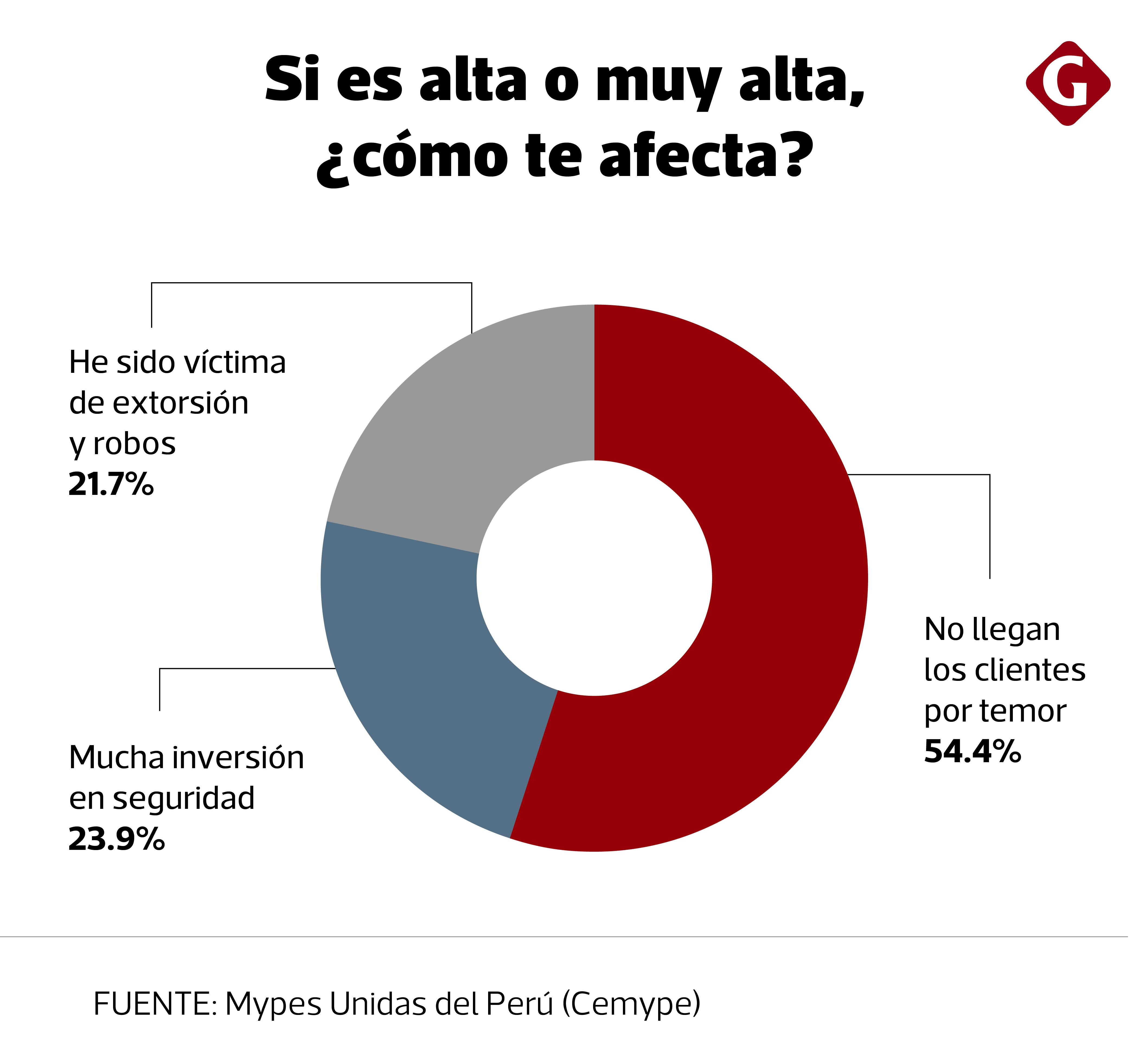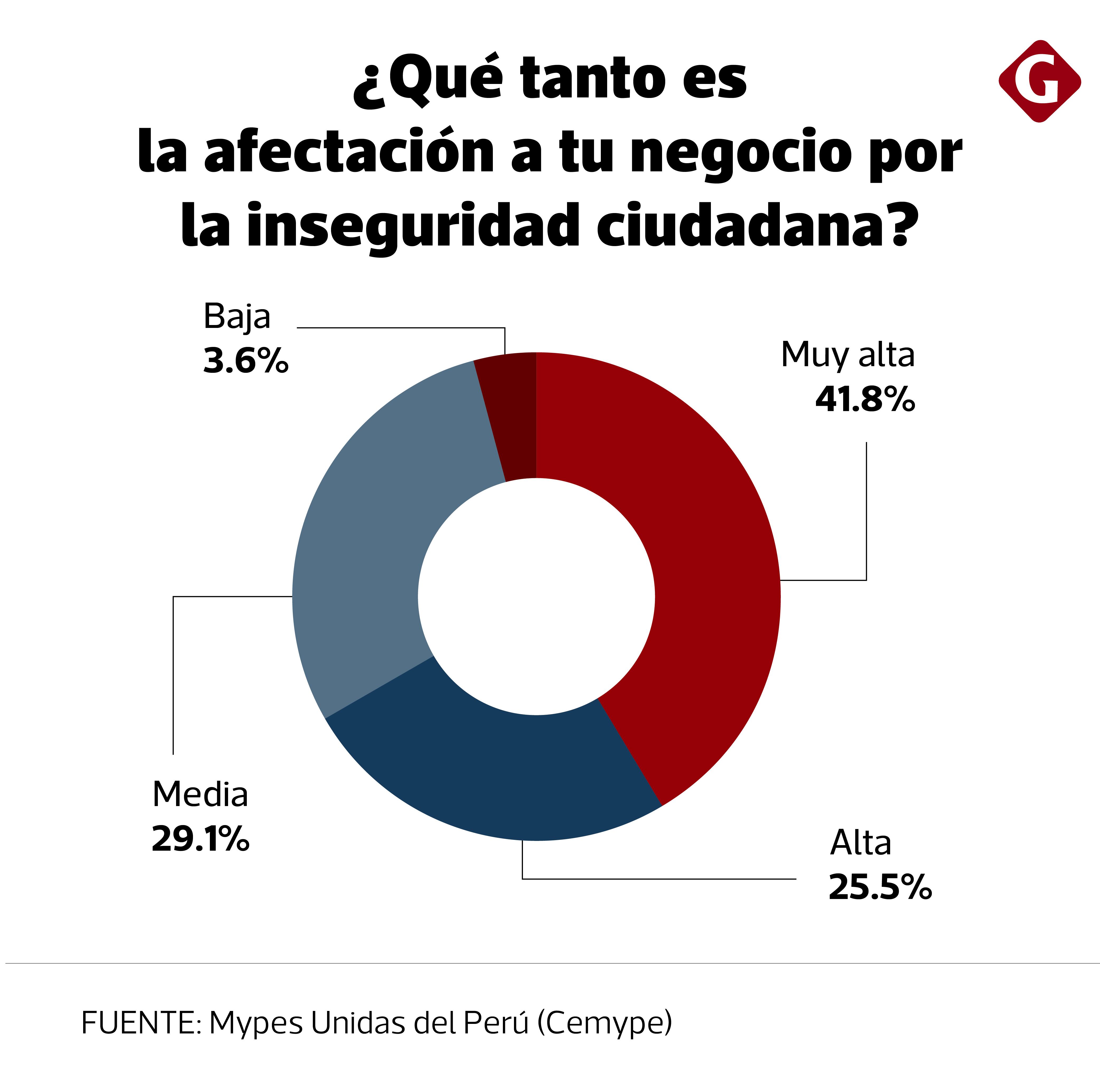 Daniel Hermoza, director de MYPES Unidas del Perú, mostró una profunda preocupación ante el incremento de la inseguridad y su impacto en su sector. Una encuesta realizada por su gremio, a fines de agosto, reveló que más del 67% consideró que la afectación a su negocio, al menos, ha sido alta. De este grupo, el 21% señaló haber sido víctima de extorsión y robos.
