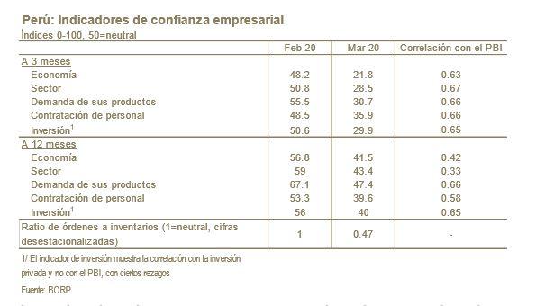 “De hecho, con la información disponible (consumo interno de cemento, inversión pública, entre otros), estimamos un crecimiento anual de 3.5% en febrero. Por el contrario, el reporte de expectativas empresariales y la caída de la inversión pública (de aproximadamente 12% real de acuerdo con nuestros estimados sobre la base del portal de consulta amigable del MEF) emiten las primeras señales de que el PBI se ajustó severamente a la baja en marzo”, remarcó.