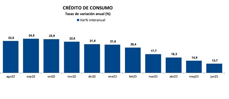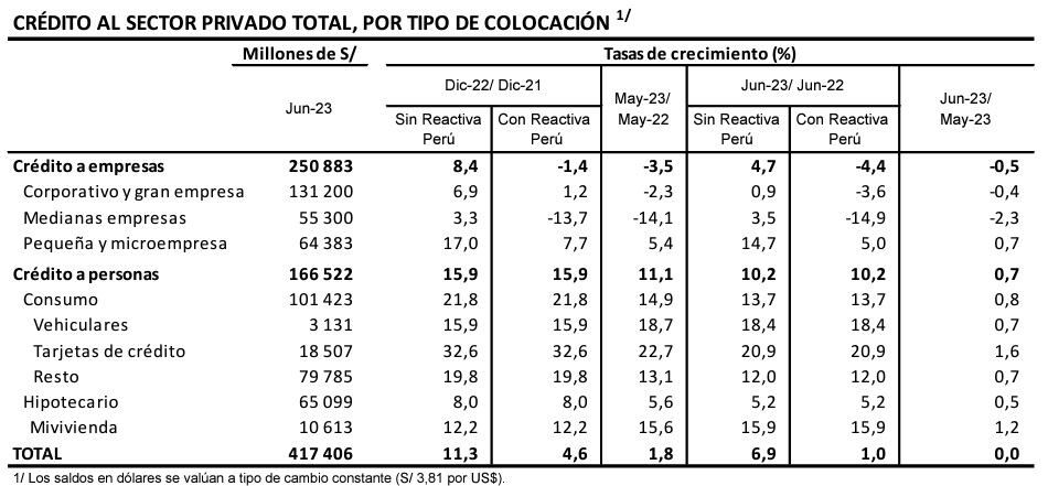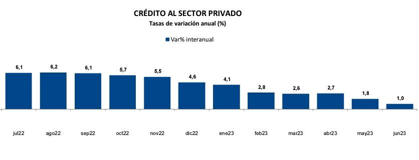 Así, el crédito total al sector privado creció solo 1% en junio, respecto a similar mes del 2022. La tasa es menor al 1.8% registrado en mayo y mantiene una trayectoria decreciente a lo largo del año. En diciembre del 2022 la tasa de crecimiento había sido de 4.6%.