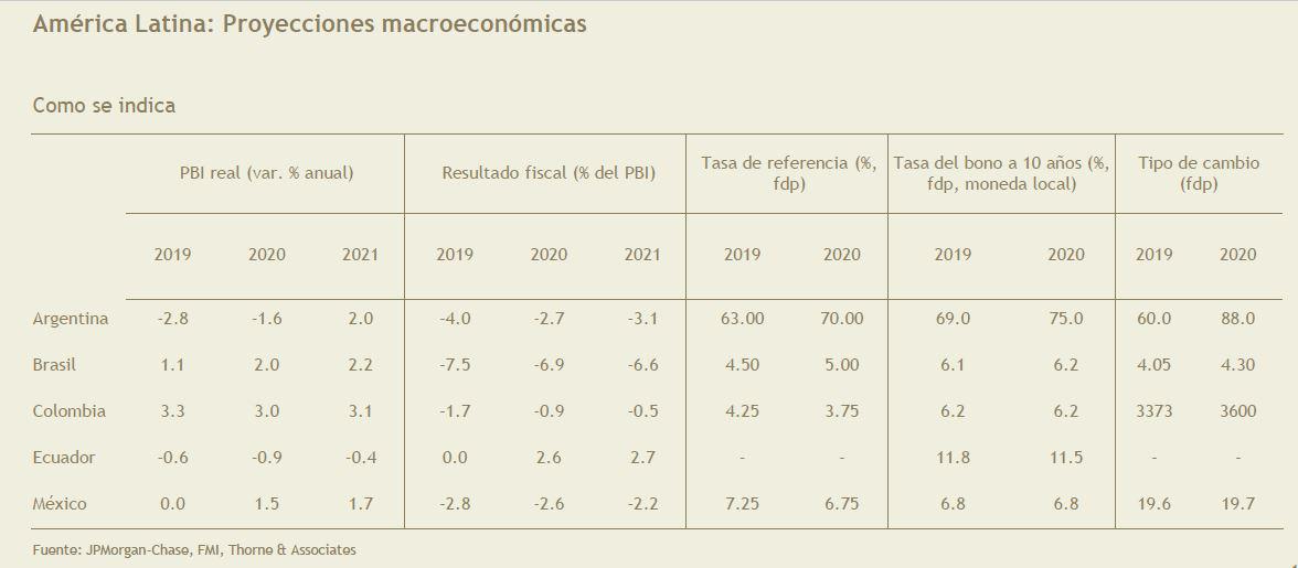 A continuación, Thorne & Associetes detalla como estarán cerrando las principales economías de la región y sus estimados para el 2020.