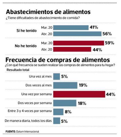 Una de las situaciones que se mostró en la encuesta Pulso Perú de abril fue que la población sintió que la provisión de alimentos fue más complicada en el mes de abril respecto a lo sucedido en marzo.