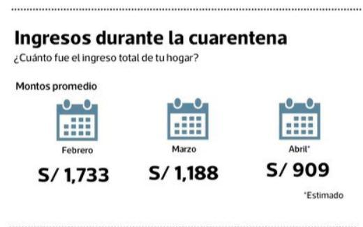La encuesta Pulso Perú de mayo realizada por Datum, reveló que entre febrero y abril los ingresos de los trabajadores peruanos se redujo en 48%, pues se pasó que en promedio ganen S/ 1,733 a S/ 909, es decir, una reducción de S/ 824.