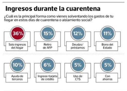 El sondeo de Datum también mostró que el 36% de las personas está solventando sus gastos con los ingresos que tienen las personas que viven en el hogar. Esta situación se observa en el 48% de nivel A/B, el 37% del C y el 32% del D/E.