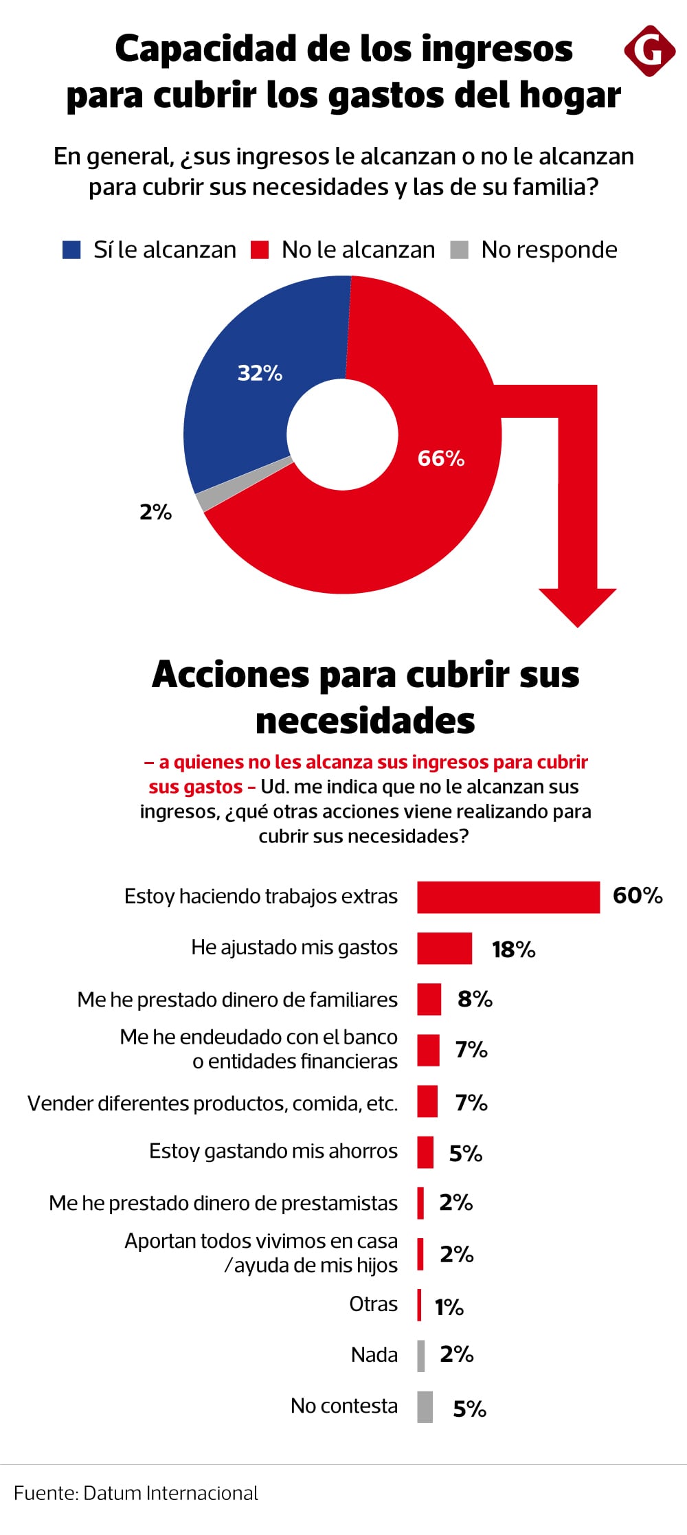 En el contexto antes descrito, el 66% de peruanos señala que sus ingresos no les alcanza para cubrir sus necesidades y las de sus familias. ¿Qué hacen frente a ello?