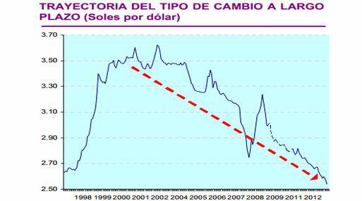 "Esta medición implicaría una apreciación de 3.6%, superior al 3% del promedio 2006-2011 (sin considerar 2009 por ser año de crisis internacional) pero menor al 5.4% del 2012. Es difícil que una apreciación mayor sea tolerada por el BCR", señaló Mario Guerrero, analista del Departamento de Estudios Económicos del Scotiabank.