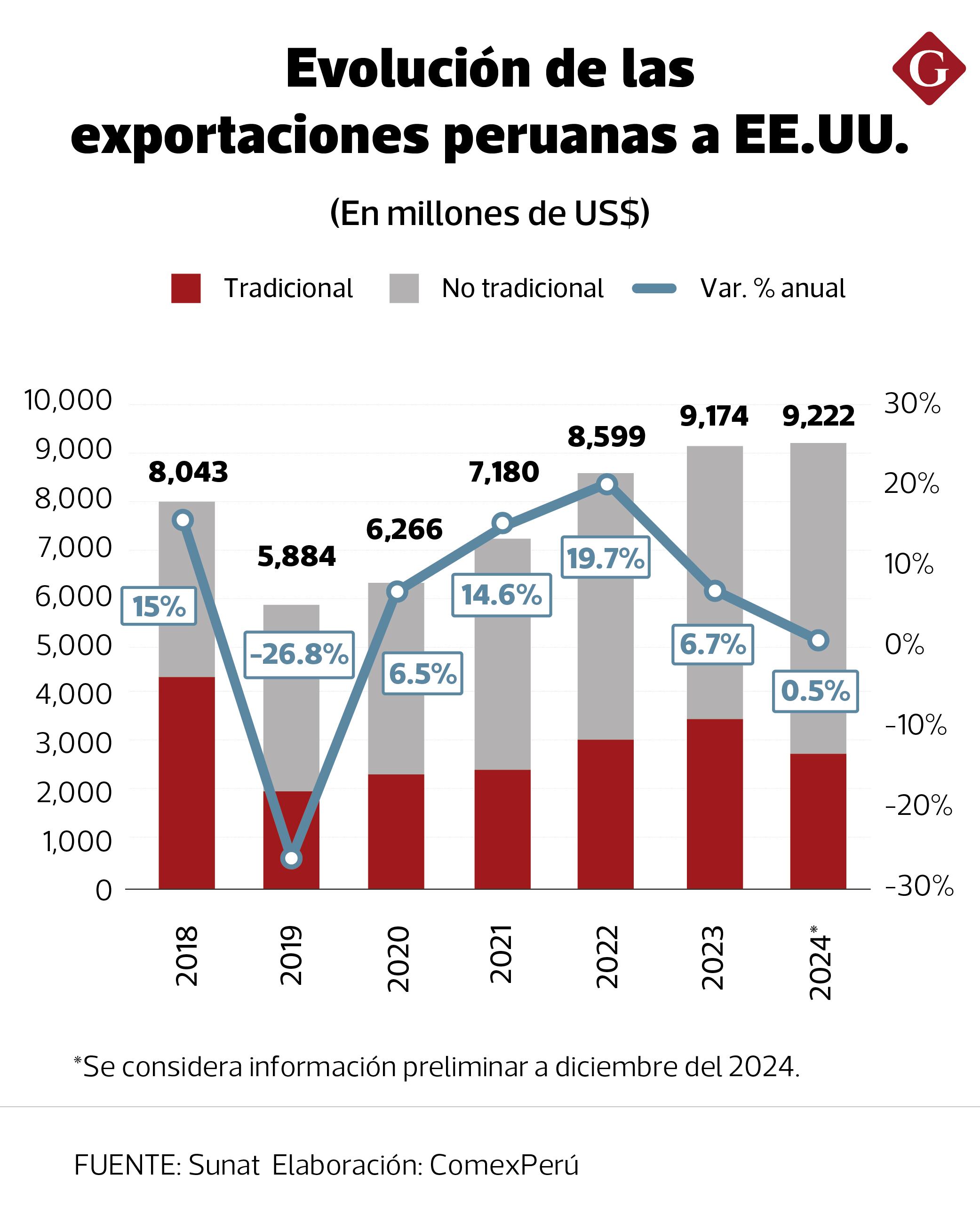 En aquella oportunidad, la guerra comercial de Estados Unidos contra China sí se mantuvo, recordó el representante de ComexPerú. En ese periodo, los aranceles se centraron en sectores específicos como la industria del acero y la construcción, pero ahora, indicó, la amenaza arancelaria implicaría a más productos.