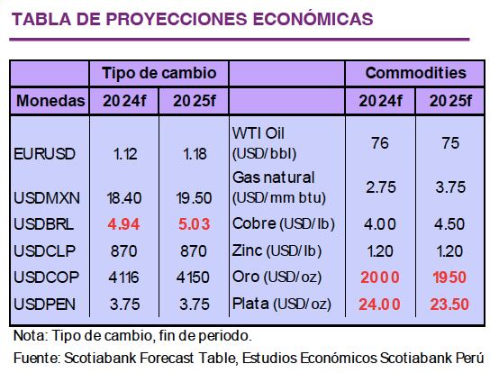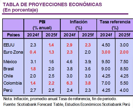 “Scotiabank ha revisado a la baja el crecimiento de la Euro Zona de 0.5% a 0.4% para este año y para el 2025 de 1.5% a 1.3%. Conforme la inflación continúe descendiendo -proyectamos 2.3% para fin de año- el banco central empezaría el ciclo de recortes de tasas este año, pasando del actual 4.5% a 3% a fines del 2024 y de 2% para fines de 2025″, apuntaron.