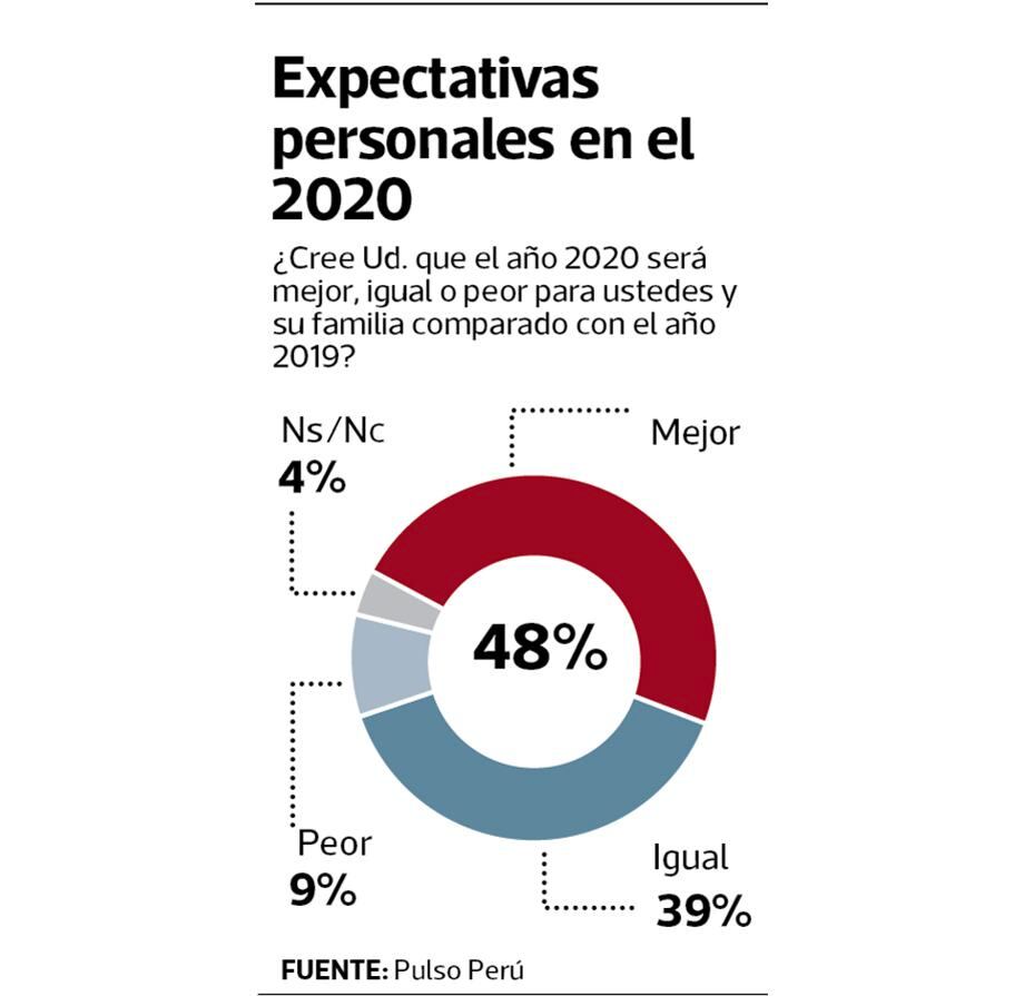 De otro lado, el 48% de peruanos señaló que este año será mejor para sí mismos y para su familia, respecto al 2019. Los más optimistas son los jóvenes de 18 a 24 años (50.9%) y aquellos entre 35 a 44 años (53.2%).