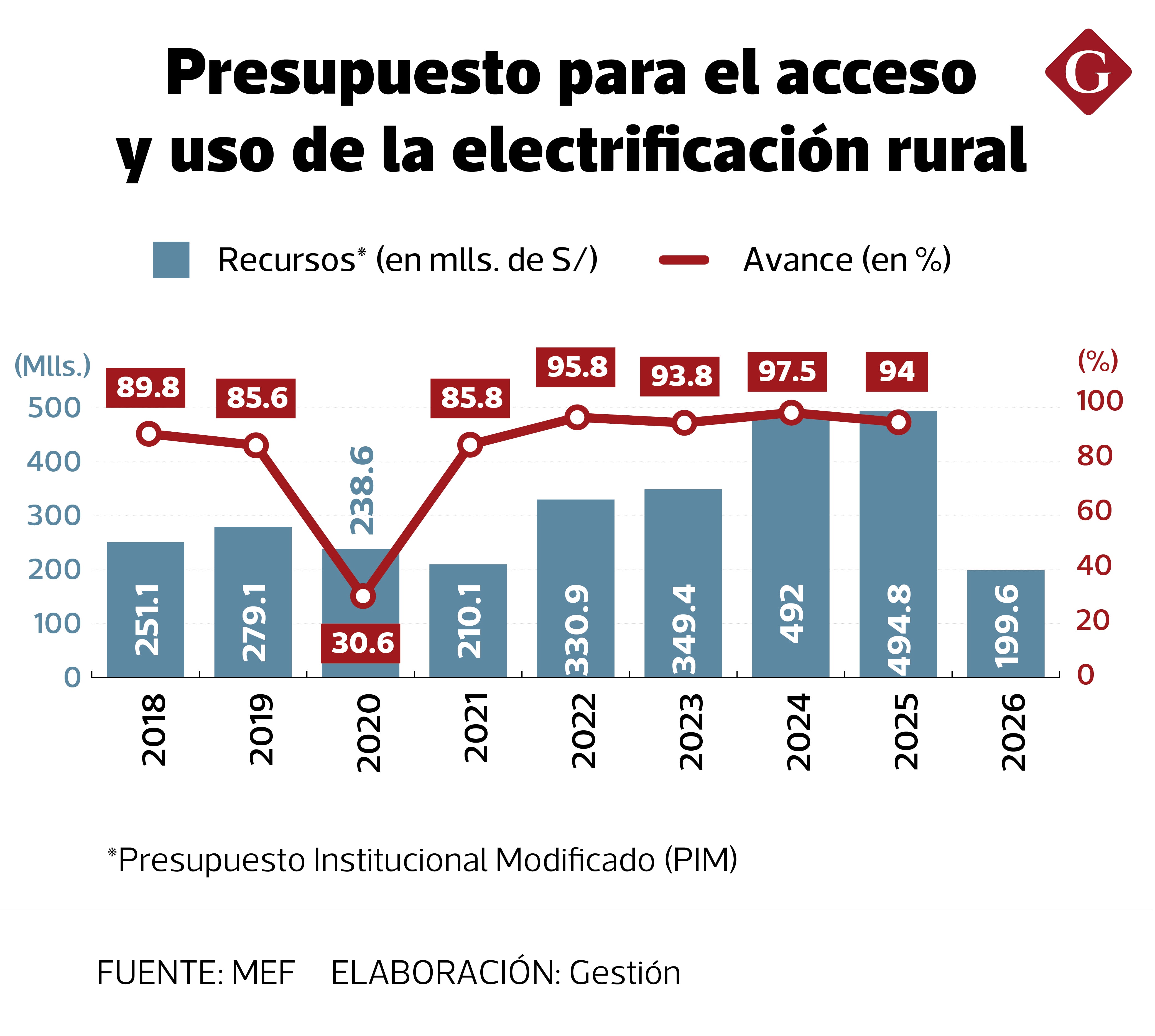 En este año, esta dirección ministerial cuenta con S/ 199.6 millones para proyectos de inversión pública relacionados al acceso y uso de la electrificación rural. Este monto, sin embargo, representa una reducción de casi 60% frente a los S/ 495 millones con lo que contó al cierre del año pasado y del que logró ejecutar un 94%.