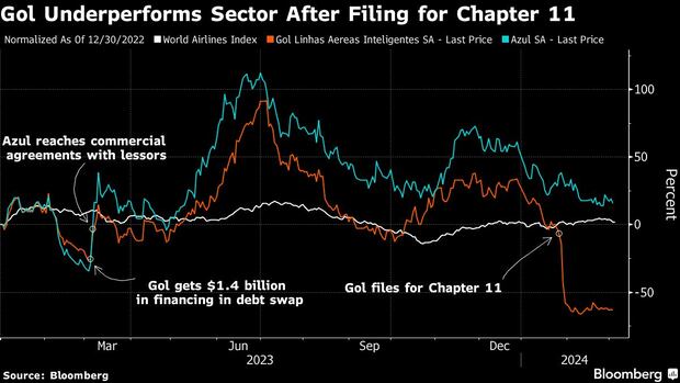 Gol, con sede en Sao Paulo, se acogió al Capítulo 11 después de lidiar con US$ 2,700 millones en pasivos a corto plazo y realizar una docena de canjes de deuda. En el marco del proceso, ha logrado aumentar su financiación de deudor en posesión de US$ 950 millones a US$ 1,000 millones.