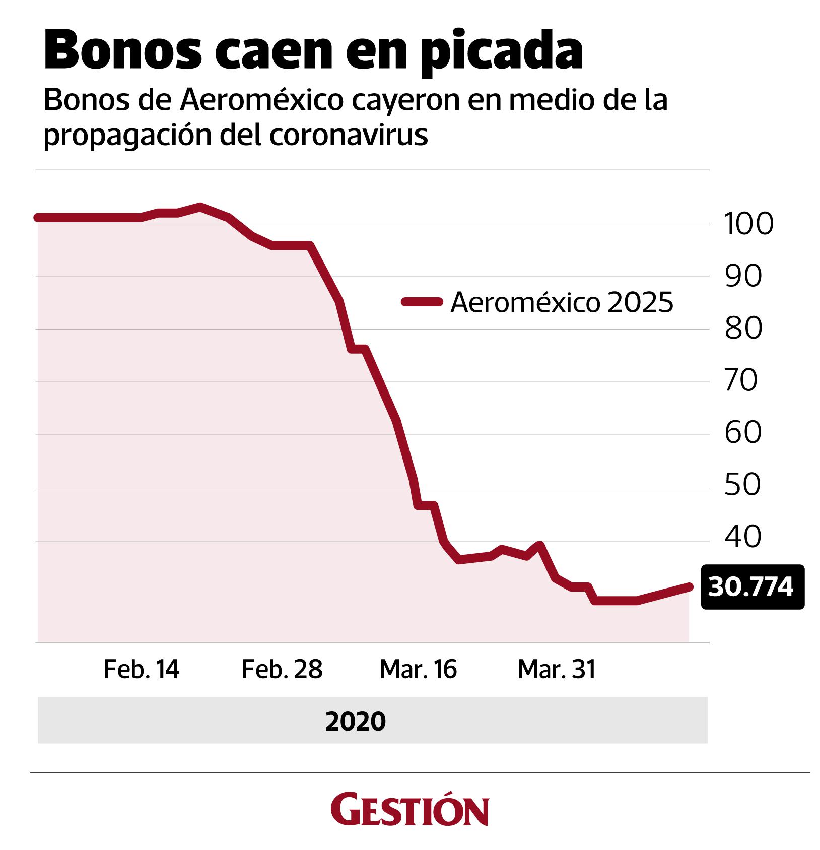 Los bonos de Aeroméxico con vencimiento en el 2025 ahora devengan solo 31 centavos por dólar dado que la pandemia de coronavirus y las resultantes restricciones de viaje borraron casi por completo la demanda mundial de vuelos de pasajeros.
