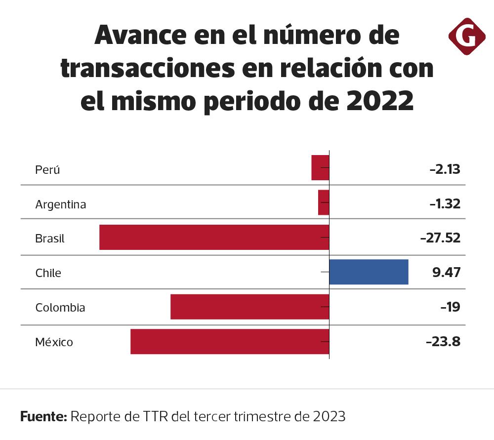 Según TTR, de enero a setiembre del año en curso el subsector económico en el que se ha registrado un mayor número de transacciones es el de recursos metálicos y minerales, que también se encontró en el top 4 en el 2022, 2021 y 2019. Los dos subsectores que este año le siguen en el podio son generación de energía y servicios eléctricos, y agricultura y pesca, que a diferencia del primero no habían destacado en número de transacciones en los últimos años.