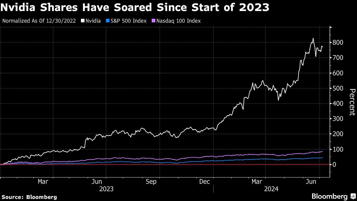 Es la segunda acción con mejor desempeño entre los componentes del S&P 500 este año, por detrás de Super Micro Computer Inc, otra favorita entre los inversionistas en inteligencia artificial. El repunte ha añadido US$ 1.9 billones a la capitalización bursátil de Nvidia, y le otorgó brevemente el título de la empresa más valiosa del mundo.