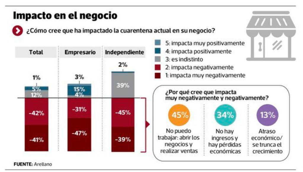 De ese grupo, un 36% son empresarios y un 51% independientes. “Lo que vemos es que una de las primeras medidas que se han tomado es reducir inversiones (18% de los encuestados), seguido de brindar servicios de manera digital (15%), que está enfocado en quienes están en el rubro de servicios”, comentó Rolando Arellano Bahamonde, gerente general de la consultora.