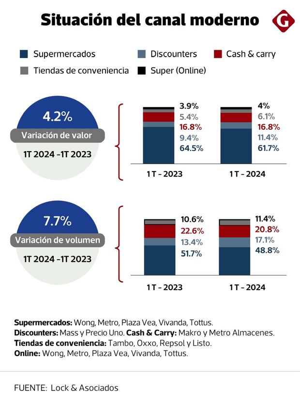 “Vemos que los supermercados (Wong, Metro, Plaza Vea, Vivanda, Tottus) se contraen muy levemente, a la vez que vienen creciendo otras alternativas como discounters y convenience; además, de cash & carry (Makro y Metro Almacenes) que también tiene una presencia interesante. Y es que contribuye a los discounters y convenience, el que su número de locales esté en crecimiento no solo en Lima, sino también en provincias”, explicó Patricia Pellón, gerenta Comercial de Lock & Asociados.
