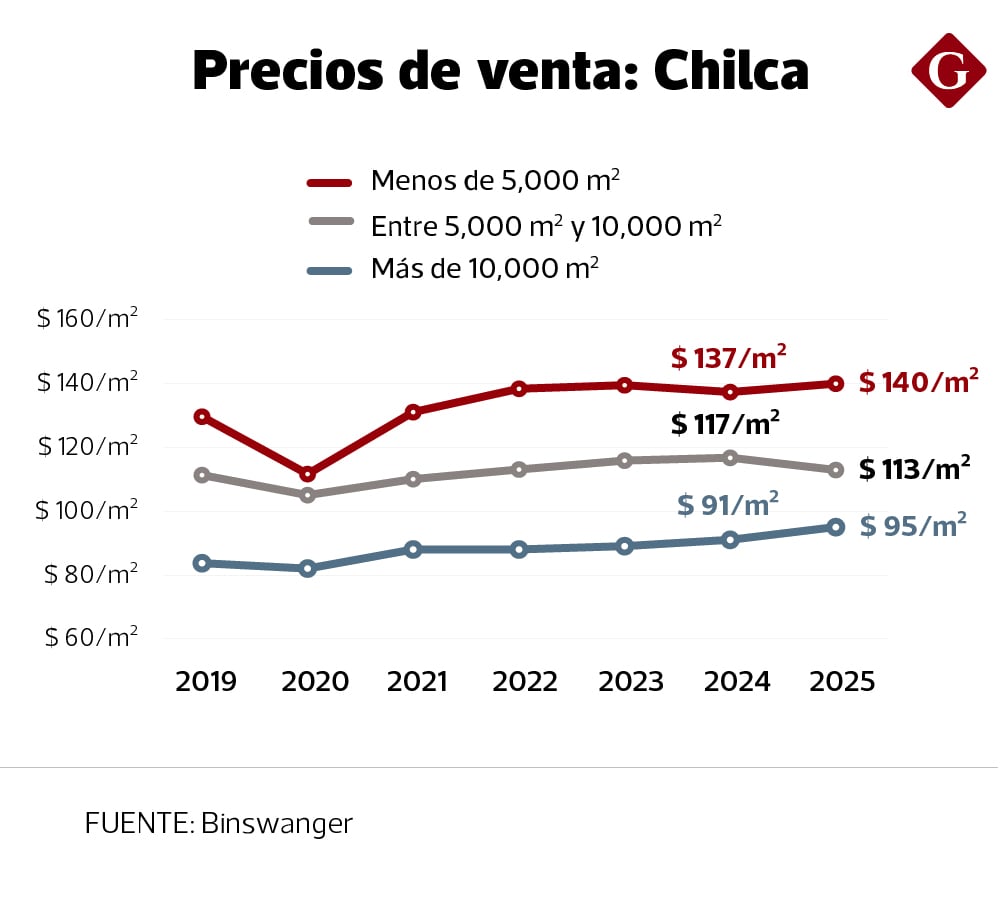 El reporte inmobiliario Parques Industriales Lima 2025-2026 elaborado por Binswanger Perú expone que el distrito de Chilca concentra aproximadamente el 60% de la oferta disponible de terrenos industriales en Lima, superando ampliamente a otros polos industriales como Lurín o Huachipa y consolidándose como uno de los principales hubs industriales del sur de la capital.