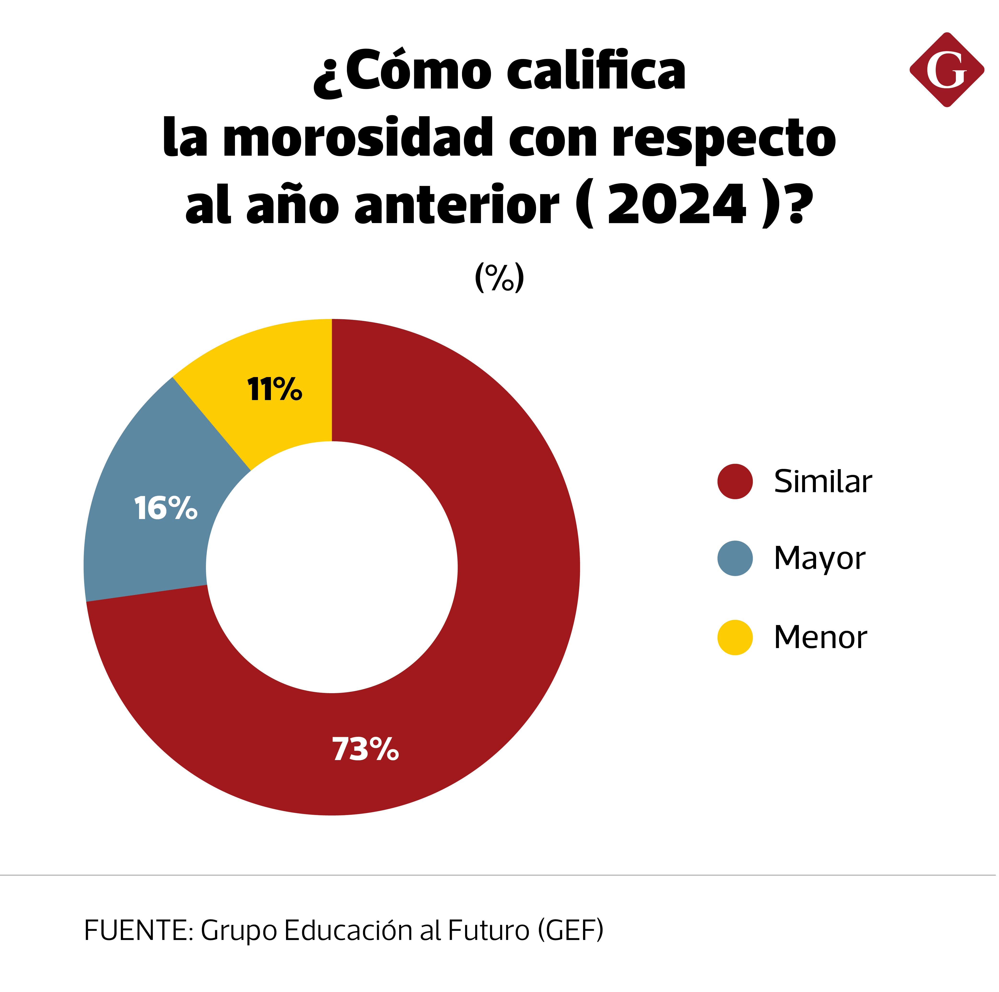 El análisis también aborda el comportamiento de la morosidad durante el 2025. En el 73% de los colegios privados, el incumplimiento de pagos se mantuvo tan alta como en el 2024; incluso para un 16% fue mayor, mientras que solo para el 11% la morosidad disminuyó.