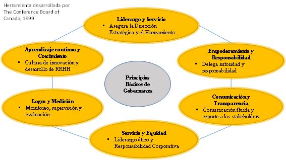 En el siguiente gráfico podemos observar los principios básicos que sustentan la gobernanza identificados por The Conference Board of Canada: