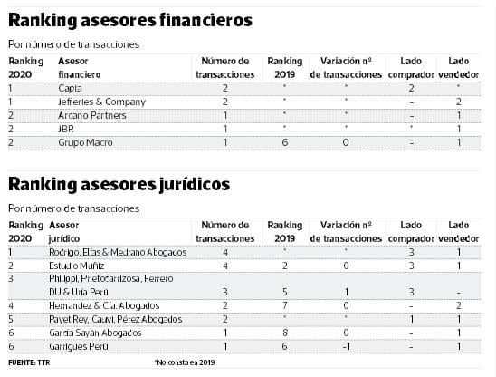 Si vemos la cifra en lo que va del año, el Perú suma unos US$ 519 millones, con 17 operaciones, y descensos en ambos casos de 63% y 51%, respectivamente. Lo que prima son las fusiones y adquisiciones (9), le siguen la compra de activos (4), capital privado (3) y capital de riesgo (1).