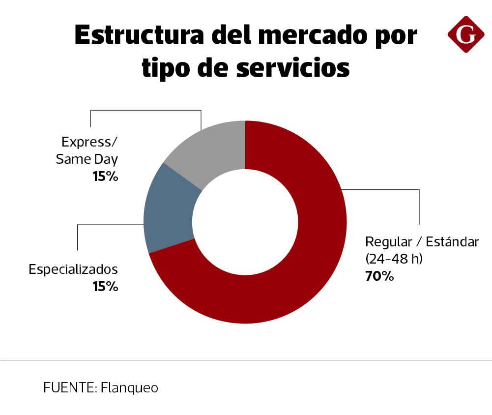 “El servicio regular o estándar con entregas en 24 o 48 horas comprende el 70% del mercado, sin embargo, lo que ha venido creciendo de manera acelerada es el servicio express (en menos de una hora) y same day (el mismo día), que ya representa el 15%, concentrado en Lima Metropolitana. El resto comprende servicios especializados como logística inversa o contra entrega”, comentó.