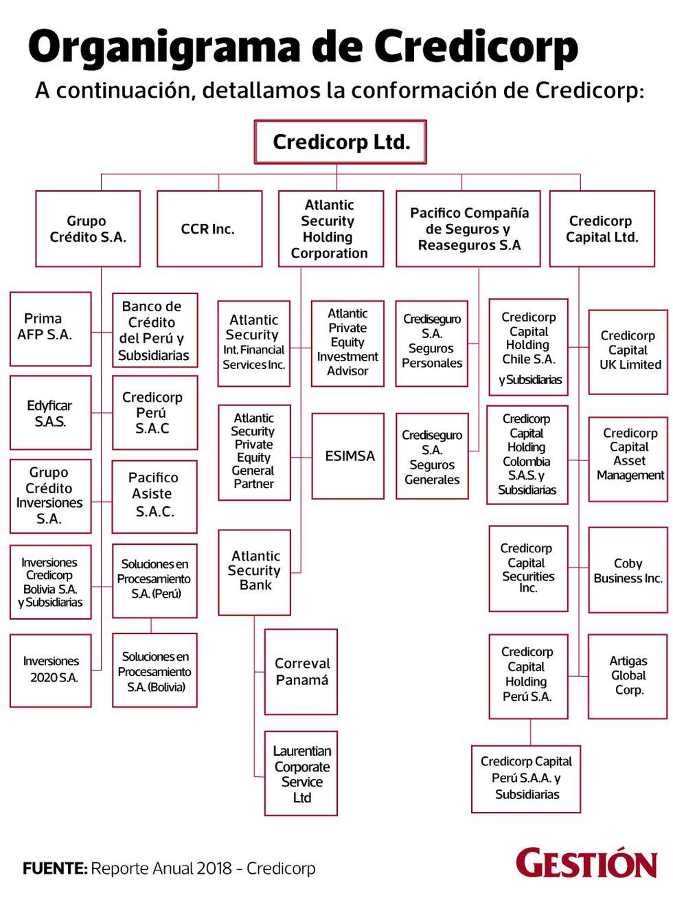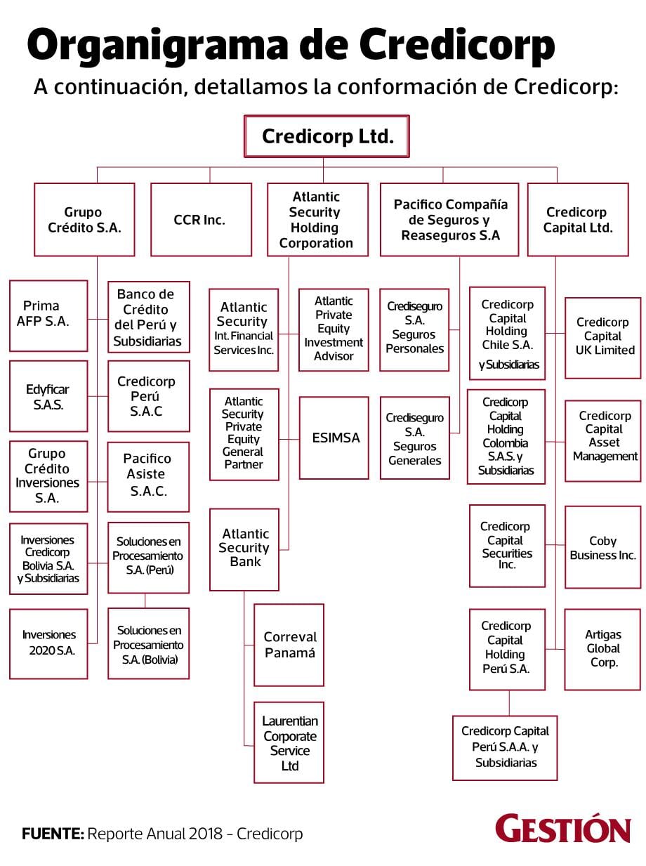 El grupo financiero más grande del Perú se constituyó en el mes de agosto de 1995, en la ciudad de Hamilton en Bermuda, que ofrece servicios en Perú, Bolivia, Estados Unidos, Panamá, Chile y Colombia, y desarrolla sus operaciones a través de seis principales subsidiarias: Banco de Crédito del Perú, BCP Bolivia, Pacífico Seguros, Prima AFP, Atlantic Security Bank y Credicorp Capital.