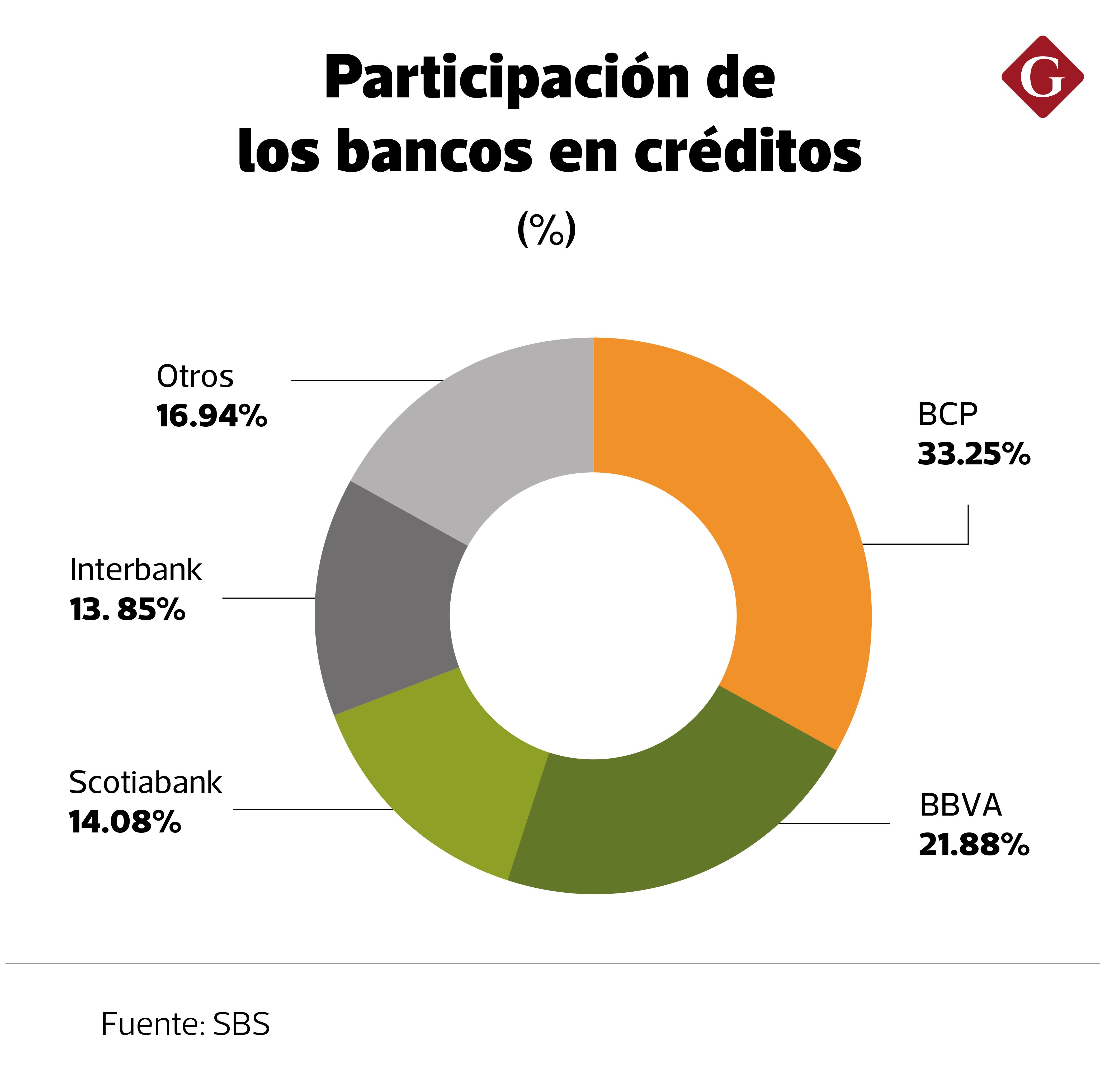 Los cuatro bancos más grandes (BCP, BBVA, Scotiabank e Interbank) concentran el 86.3% de los préstamos a corporaciones, y el 84.7% de los destinados a grandes empresas.