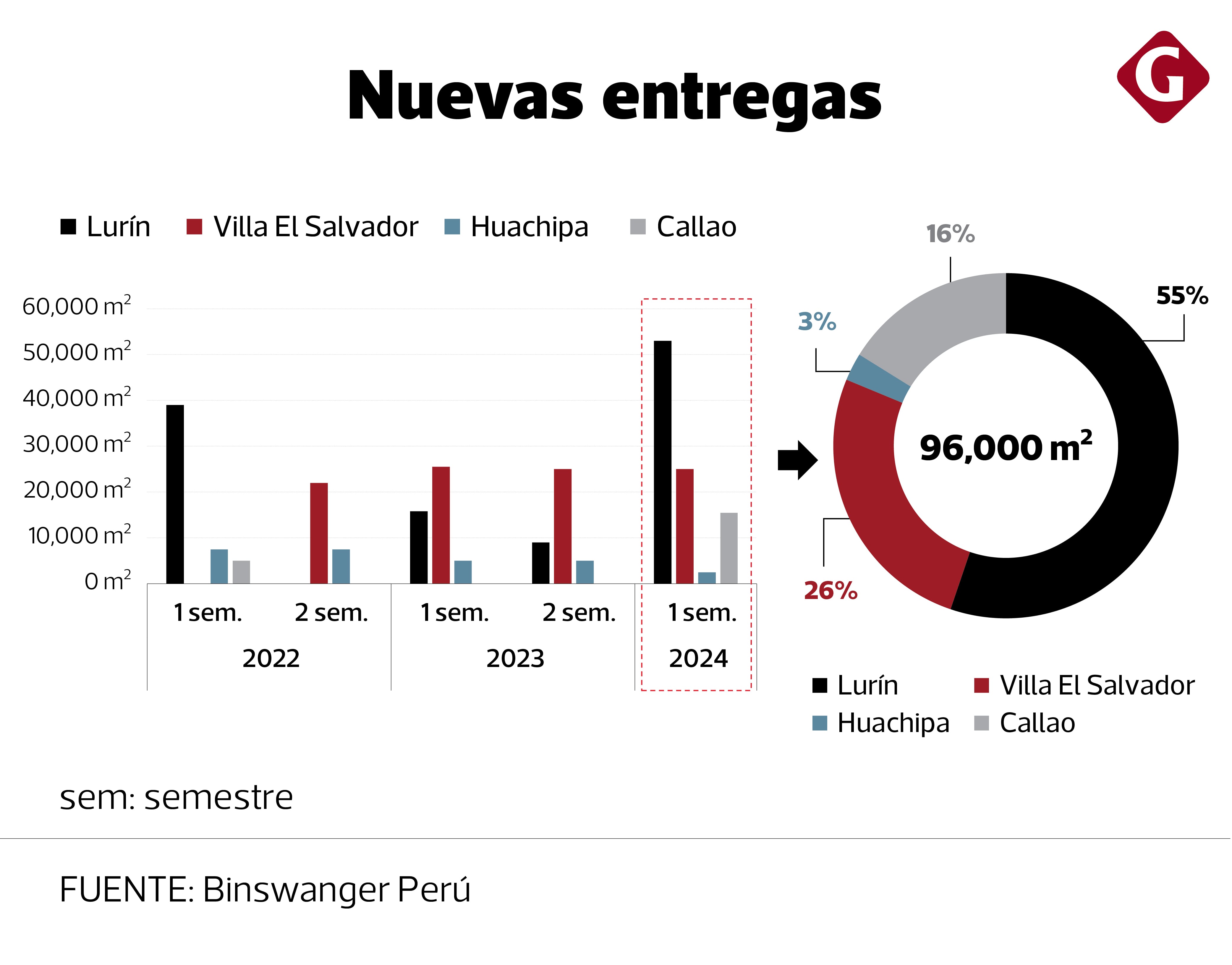 El mercado de condominios de almacenes sigue mostrando un notable dinamismo. Según el último informe de Binswanger, en el primer semestre del año se entregaron 104,000 metros cuadrados (m2), más del 50% de estas entregas estuvieron concentradas en Lurín, seguido de Villa El Salvador. El formato de clase A (con altura superior a los 12 metros) sigue siendo el predominante en las nuevas entregas, representando más del 90% del total en comparación con el de clase B (con altura superior de hasta 8 metros). Ante este panorama, surge la pregunta, ¿Qué oportunidades de crecimiento presentan Lima Norte y Callao?, y ¿es posible que la hegemonía de Lurín y Villa El Salvador (VES) cambie en el mediano plazo?
