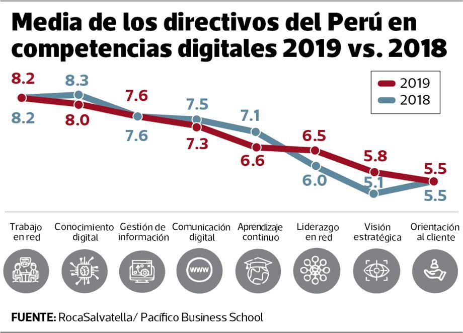 En una ruta sin marcha atrás, los ejecutivos peruanos mejoran sus habilidades en el mundo digital. Y el 2019, ello se traduce en un puntaje de 6.94 sobre 10, según revela el Informe de Madurez Digital de Pacífico Business School y RocaSalvatella.