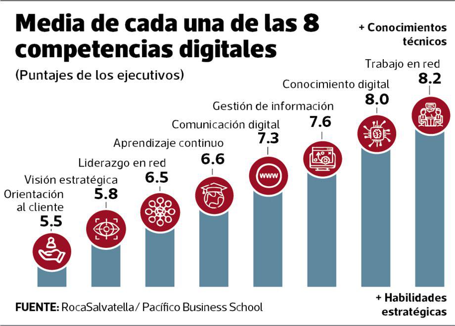 En dicha calificación se consideraron ocho competencias digitales (trabajo en red, conocimiento digital, gestión de la información, comunicación digital, aprendizaje continuo, liderazgo en red, visión estratégica y orientación al cliente).