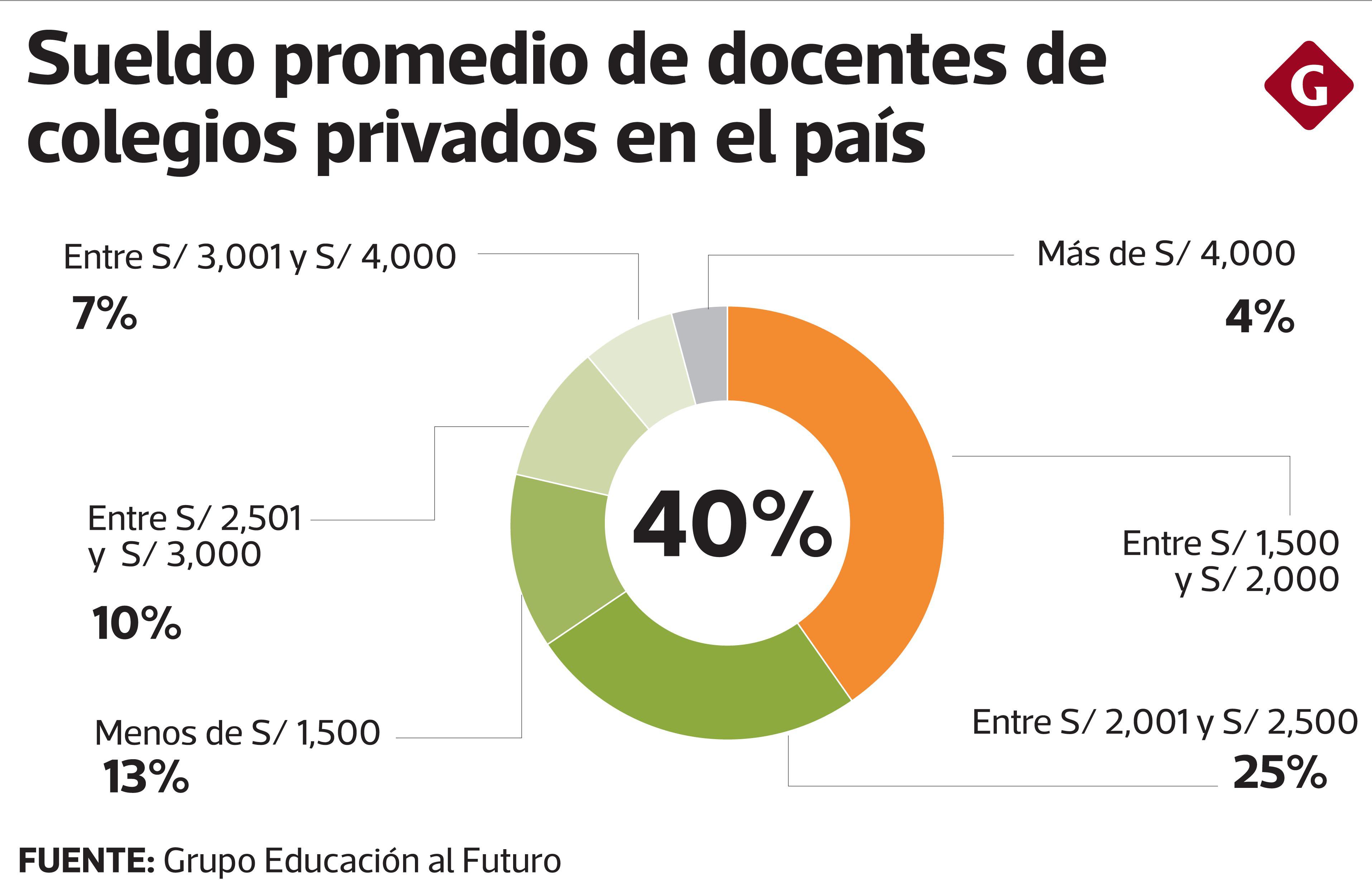 Cabe señalar que los docentes de los colegios con pensiones que no superan los S/ 300, ganan al mes menos de S/ 1,500.