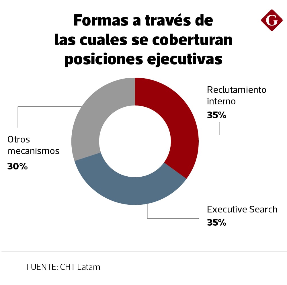 De cara a captar ejecutivos, las empresas en un 35% contratan a sus talentos a través de los reclutamientos internos; 35% por medio de firmas consultoras o agencias especializadas y un 30% recurre a otros mecanismos, como las redes sociales y similares.