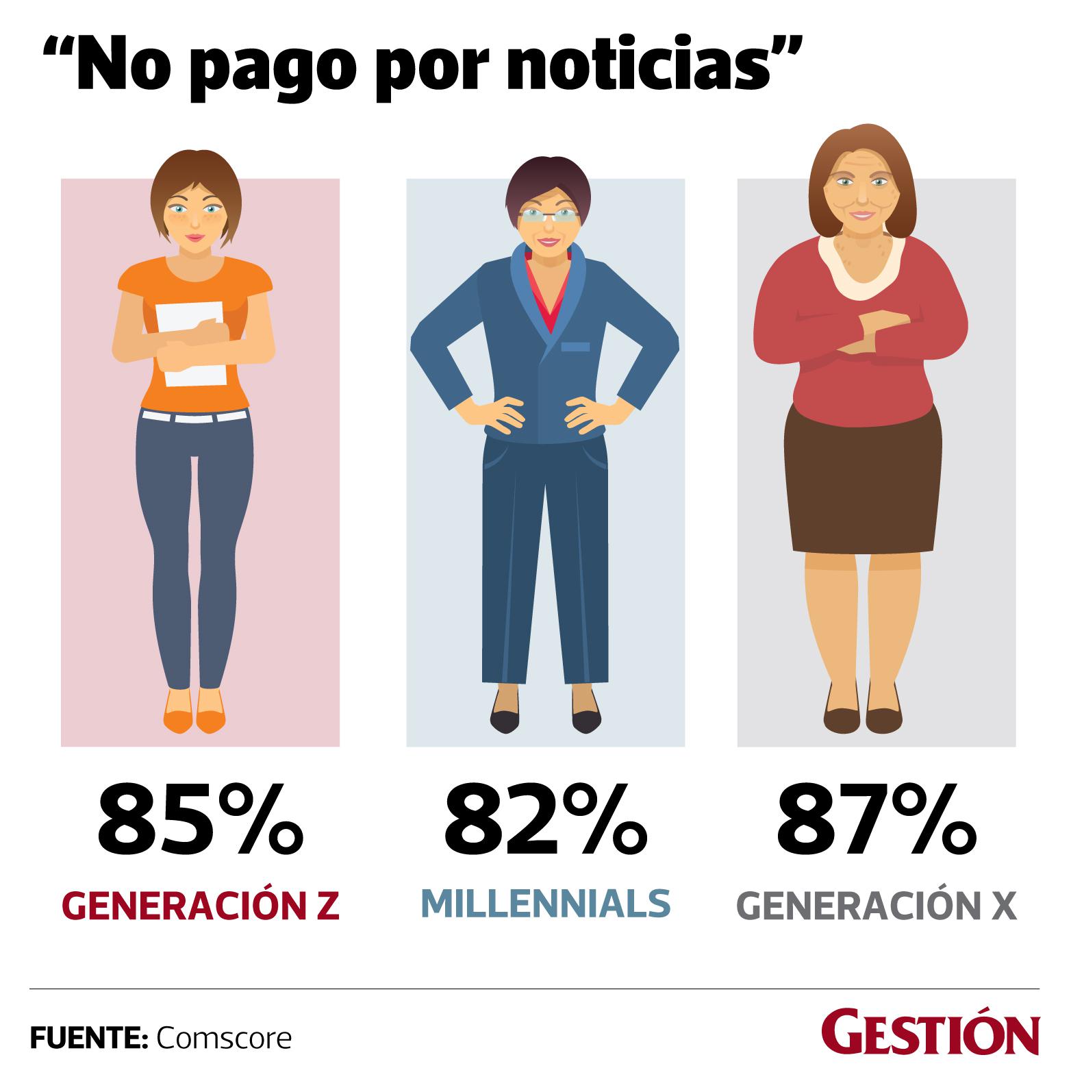 Y si bien las generaciones jóvenes dicen que aún no pagarán por noticias (ver gráfico), la millennial es la más dispuesta a pagar por este tipo de contenido. Cabe señalar que existen casos, como el del New York Times -que casi duplicó sus ganancias del negocio digital en dos años- que demuestran que el mercado está empezando a apostar por este tipo de contenido.