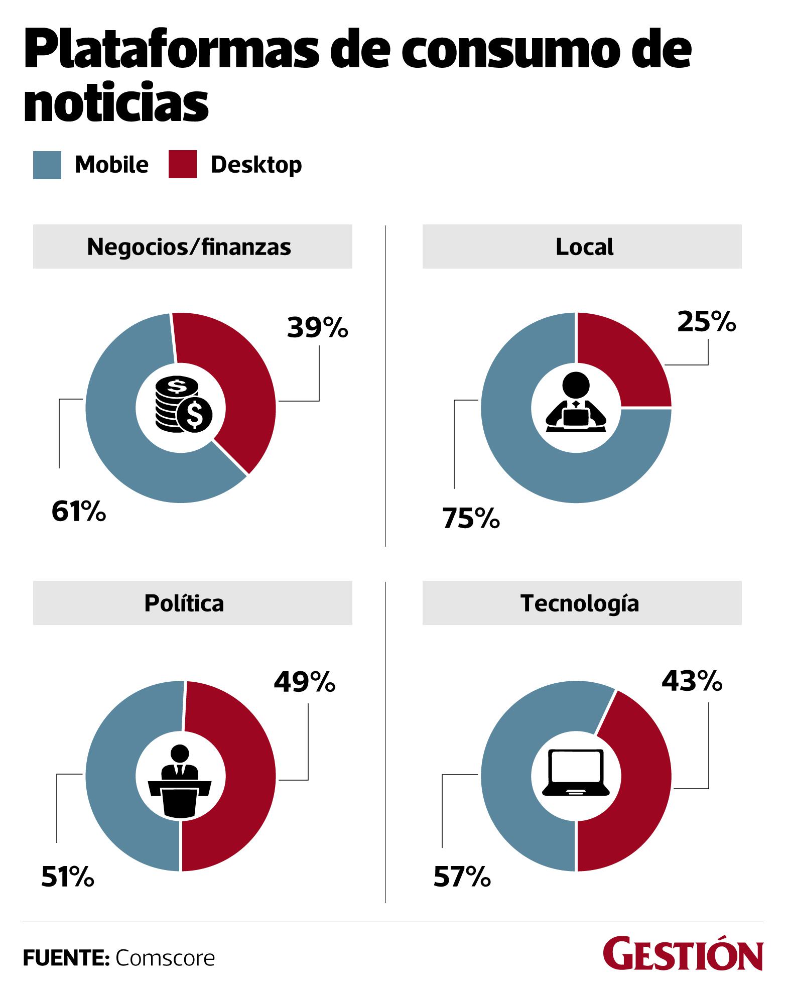 Las categorías más consumidas a través de desktop son: política, tecnología, negocios y finanzas; y las noticias locales son las más consumidas en formato mobile.