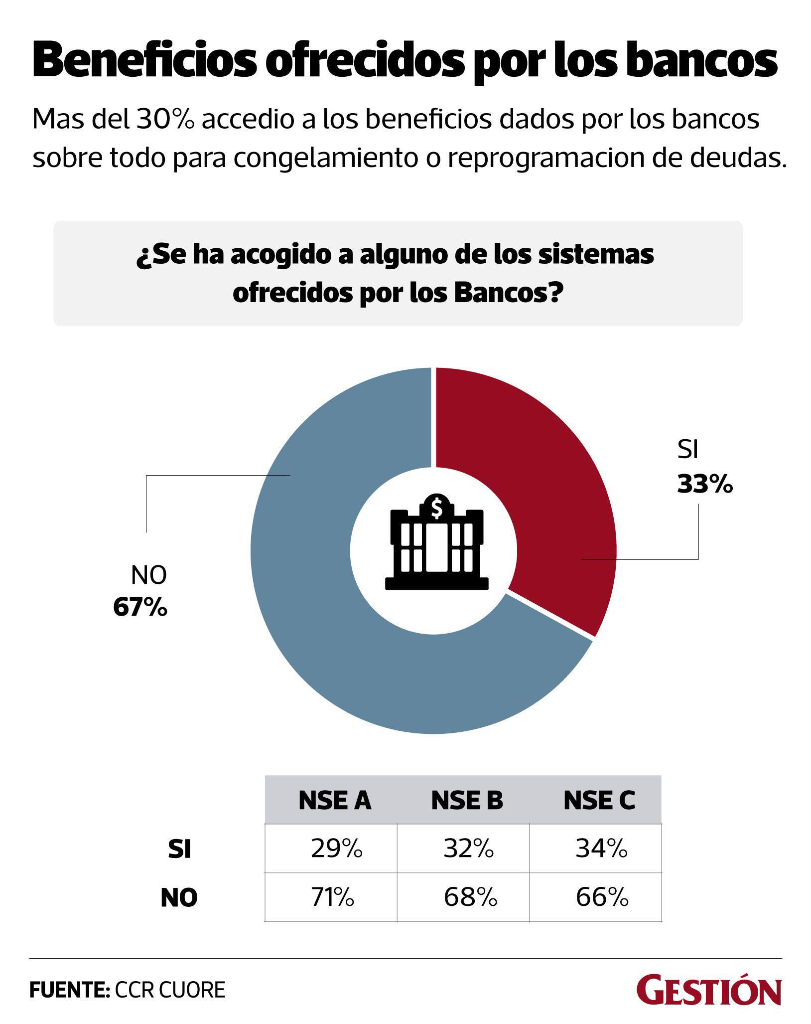 En el ámbito laboral, la mayoría menciona haber tenido complicaciones laborales, entre ellas: tomar días como vacaciones adelantadas, pérdida de trabajo, reducción de salario así como la suspensión perfecta o licencia sin goce de haber; solo el 35% dijo que no tuvo ninguna complicación, con mayor tendencia en los NSE A y B. El 15% tuvo que tomar vacaciones adelantadas.