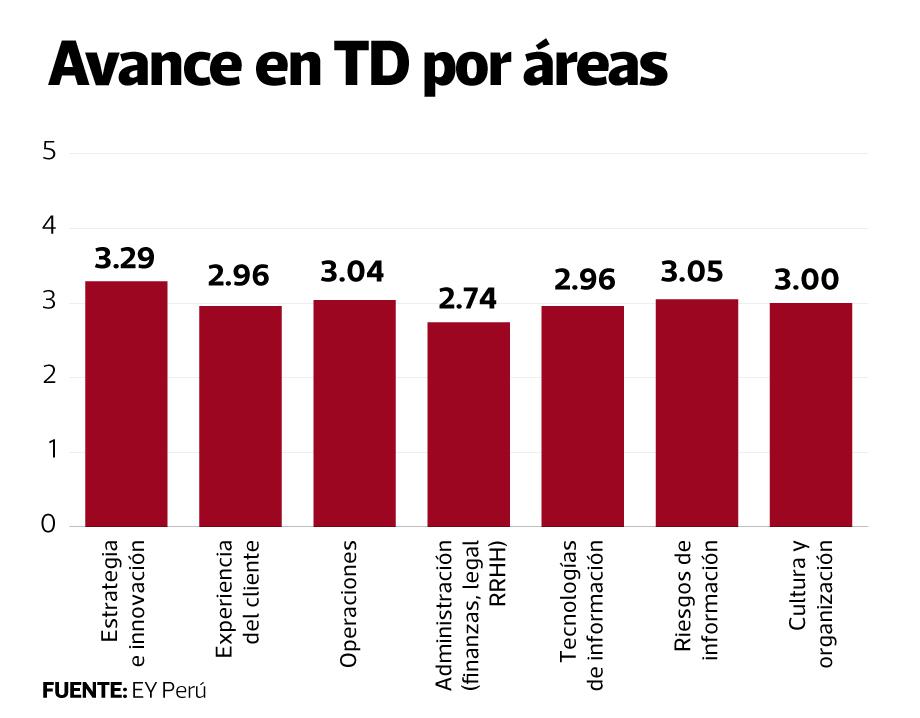EY también midió el avance en temas digitales dentro las empresas. El área más avanzada es la de estrategia e innovación, seguida de riesgos y ciberseguridad, y operaciones.